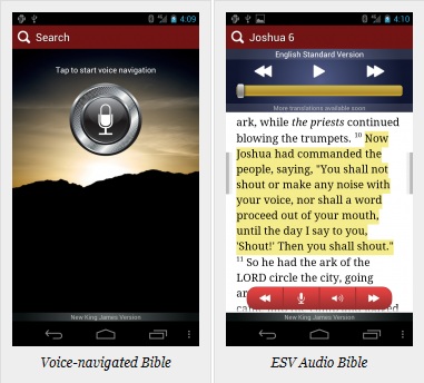 Colin Wong seorang bekas pegawai Google yang saat ini menjabat sebagai CEO eBible.com bersama tim kerjanya menciptakan aplikasi yang bisa digunakan untuk mendengar perintah suara untuk mencari ayat Alkitab dan kemudian membacakanya. Untuk peluncuran ini, aplikasi ini hanya bisa membaca Alkitab versi Bahasa Inggris Standar terjemahan. Aplikasi ini hanya bisa melayani telepon pintar jenis Google Android, sedangkan untuk Apple iOS masih dalam taraf pengembangan. Aplikasi pertama kali didunia untuk membaca Alkitab dan bisa mendengar perintah suara ini disediakan secara cuma-cuma. Bagi peminat bisa mendownload lewat Google Play.