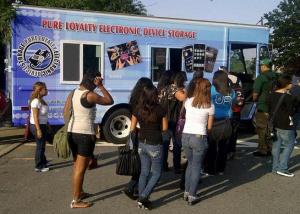 Pure Loyalty LLC beroperasi di beberapa SMA di kota New York dan hanya buka setiap hari sekolah dari jam 7 pagi sampai jam 5 sore. Ada dua pegawai di dalam truk yang selalu siap melayani siswa-siswa. Setiap truk di sediakan kantong-kantong untuk menyimpan perangkat elektronik siswa dengan urutan nomer. Setiap siswa diberi sepotong kartu pengambilan dan kartu penyerahan yang ditempel di setiap ponsel. Untuk menghindari pencurian, kerusakan, ataupun akibat truk hilang, perusahaan ini ingin menyakinkan pemilik ponsel terutama orangtua siswa dan berani membayar asuransi yang mencapai $2 juta. Pure Loyalty LLC memiliki akun Twitter untuk senantiasa mengupdate lokasi mereka dan juga mempunyai akun Facebook untuk mempromosikan usaha ini. Karena termasuk usaha yang inovasi, perusahaan ini juga sering didatangi para pencari berita setempat di kota New York dan usaha dagang ini juga sudah di tiru di kota lain. Klik disini untuk menonton video lewat YouTube.