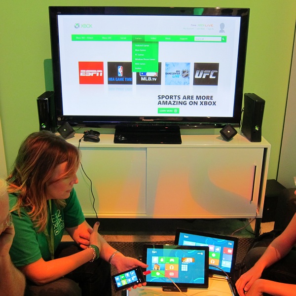 Untuk menunjang sinkronisasi antara Xbox dan sistem operasi terbaru Windows 8, tim kerja di Microsoft sudah menampilkan empat aplikasi bergaya Metro yang bisa digunakan oleh perangkat-perangkat baru yang dijalankan oleh Windows 8 OS termasuk Video, Musik, Games dan Xbox SmartGlass. Untuk memperluas jaringan hiburan lewat Xbox bagi pelanggan, Microsoft mengisyaratkan bahwa mereka siap melayani 180 negara baru di seluruh dunia ketika peluncuran aplikasi Xbox dan sistem operasi terbaru Windows 8 yang dijadwalkan dirilis pada akhir musim panas tahun ini. Untuk memperluas perpustakaan hiburan keluarga, Microsoft juga menambah mitra baru penyelenggara konten termasuk stasion olahraga ESPN, NBA (bola basket), NHL (es hockey), dan jaringan- jaringan stasion TV terkenal untuk anak-anak dan dewasa.
