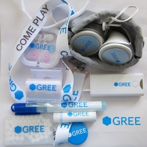 (Images: top, GREE’s schwag/promotion items received by Inovasi.com team; middle, GREE exhibit hall at E3 Expo Los Angeles, June 5-7, 2012; middle, “Zombie Jombie” booth; bottom, “Driland” booth)