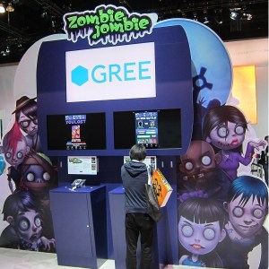 GREE berpartisipasi di konferensi E3 tahun ini dengan satu tujuan, perusahaan mobile game yang bermodal besar ini ingin sekali mengebrak pasar Amerika. Salah satu game yang dirancang khusus untuk peminat game di Amerika diluncurkan bulan Maret lalu dan masih terus dipasarkan untuk menarik minat pengunjung E3. Game ini mengambil tema zombie yang diberi judul “Zombie Jombie” dimana game ini dirancang dari perspektif zombie yang bertempur melawan dengan manusia. Sedangkan sebagai pemain mereka menjadi “Jombie” yang memiliki kemampuan untuk menambah jumlah zombie dan mengendalikan mereka dalam bentuk kartu. Setelah pemain sudah membangun setumpuk kartu zombie lalu mereka boleh bertarung dengan lawan atau teman-teman. Dalam pertempuran antara pemain satu dengan pemain lainnya, maka akan dibedakan tingkatan berdasarkan jumlah zombie, termasuk tingkatan bos zombie. Pemain diperbolehkan melacak daftar pemain lainnya di kota-kota di Amerika untuk melihat kekuatan musuh. Menurut hasil wawancara terhadap salah satu tenaga ahli di stan GREE, sejak diluncurkan bulan Maret lalu, sudah lebih dari 1 juta “Zombie Jombie” app di-download oleh fans.
