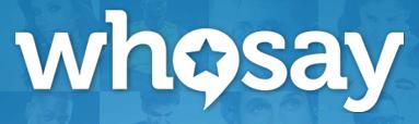 (Images: top, WhoSay logo; center WhoSay homepage)