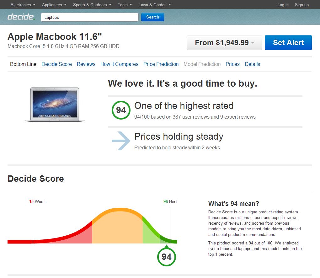 Decide.com yang diluncurkan pada bulan Juni 2011 lalu, awal minggu ini mengumumkan bahwa perusahaan startup ini menemukan metode baru untuk membantu konsumen memilih yang terbaik. Situs belanja dan layanan rekomendasi produk ini memakai “Decide Score” atau skor atau sistem rating dari 1 sampai 100 point untuk memutuskan produk secara objektif dan bermanfaat bagi konsumen.