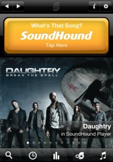(Image: top right, SoundHound logo; middle, SoundHound iTunes app; click here to watch a video demo)