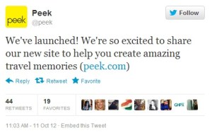 (Images: top, Peek Twitter update; middle, Peek homepage “things to do”)