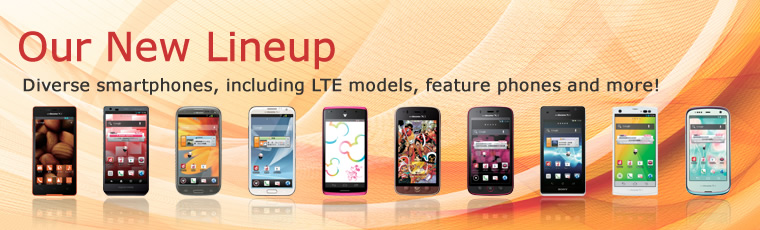 (Images: top, NTT DOCOMO company overview; bottom, DOCOMO Products Gallery and New Lineup)