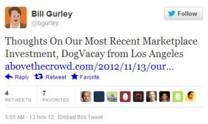 (Images: top DogVacay logo; middle, Bill Gurley Twitter status; bottom, click here to watch a video demo)