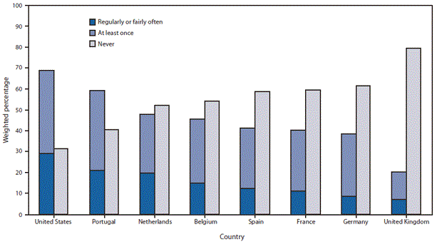 Dengan menyadur hasil analisis survei yang dilakukan oleh EuroPNStyles dan HealthStyles, CDC mengungkapkan bahwa 69 persen pengemudi di Amerika sudah pernah melakukan percakapan di ponsel pada saat mengemudi setidaknya satu kali selama satu bulan sebelum survei dilakukan. Dibandingkan dengan negara-negara maju di Eropa seperti Belgia, Perancis, Jerman, Belanda, Portugal, Spanyol, dan Inggris, yang diikutsertakan didalam survei ini, diatas 30 persen pengemudi di Amerika suka dan sering melakukan percakapan di ponsel pada saat mengemudi. Malah yang sangat mengkhawatirkan di Amerika adalah 31 persen pengemudi mengatakan mereka sudah pernah membaca atau mengirim pesan teks SMS pada saat sedang mengemudikan mobil mereka. Pengemudi di Inggris adalah warga yang paling disiplin karena hanya sedikit saja yang terganggu dengan penggunaan gadget di dalam mobil. Hanya sekitar 20 persen pengemudi di Inggris yang sudah pernah melakukan percakapan satu kali di ponsel selama mengemudikan kendaraan selama satu bulan.