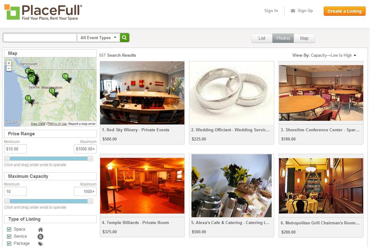 Bagi yang sedang merencanakan acara-acara istimewa, seperti acara kumpul-kumpul karyawan dan relasi perusahaan atau pesta pernikahan, PlaceFull menyediakan semacam pasar online untuk mengatur kegiatan jauh lebih mudah. PlaceFull sangat bermanfaat bagi perencana acara karena menyediakan berbagai pengetahuan menyusun acara dan berbagi pengalaman mengenai tempat acara. Tanpa harus membuang waktu menelepon ke tempat-tempat acara seperti restoran, tempat bermain, dan tempat camping, situs ini sudah menyediakan daftar tempat yang bersifat lokal, ukuran kapasitas ruang, harga sewa, yang dapat di pesan secara online dan instan. Selain itu, pengguna boleh mencari tempat berdasarkan kategori kegiatan, yang terdiri atas jenis acara seperti pernikahan, kumpul-kumpul karyawan, aktivitas pendidikan, dan pertandingan olahraga.
