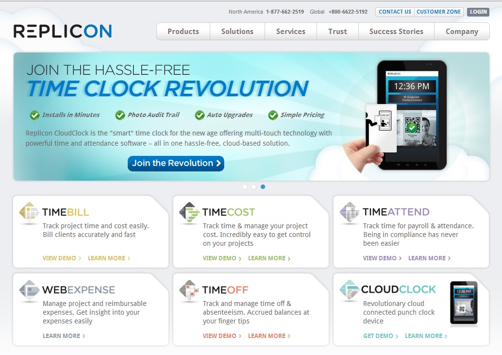 Replicon adalah penyedia terkemuka aplikasi pelacakan waktu kerja karyawan yang berbasis di cloud (awan). Replicon digunakan untuk mengelola sumber daya manusia (SDM) seperti kehadiran karyawan, biaya proyek, layanan profesional, penagihan jam kerja, dan jumlah waktu istirahat.
