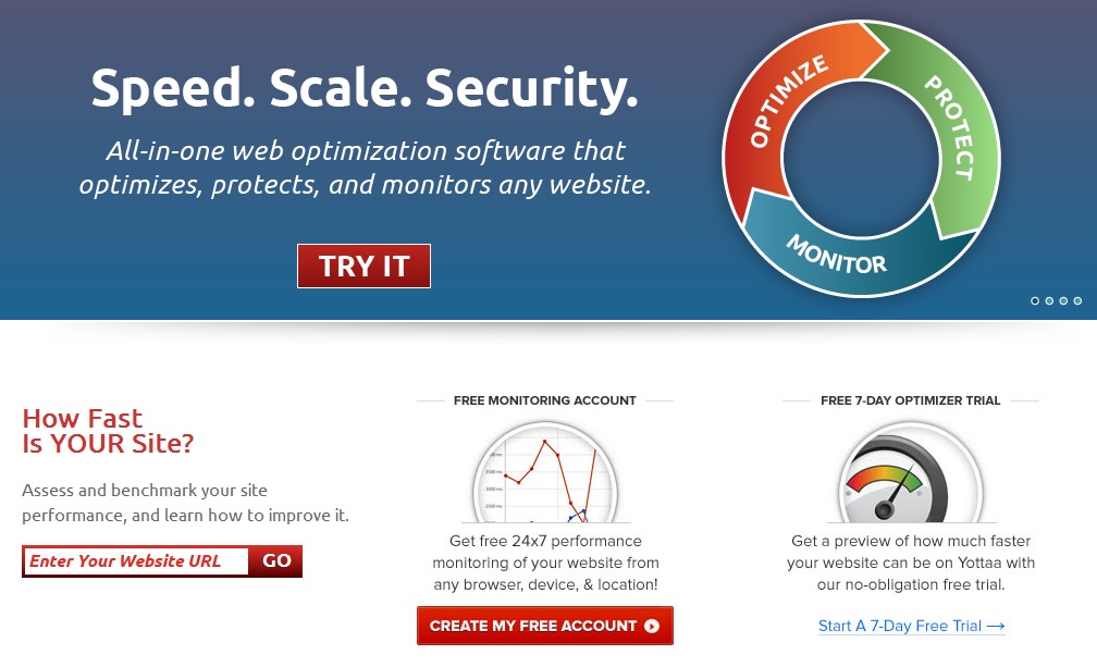 (Images: top right, Yottaa logo; bottom, Yottaa homepage screenshot)