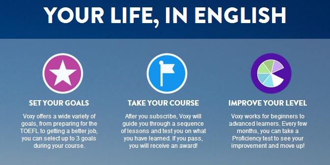 Penyedia alat-alat belajar bahasa Inggris sudah banyak di pasar, seperti dari perusahaan Rosetta Stone dan penyelenggara lainnya. Sekarang sudah hadir sebuah perusahaan startup berbasis di kota New York City yang di kenal dengan nama Voxy. Startup ini membantu orang di seluruh dunia untuk belajar bahasa Inggris dengan mengandalkan inovasi pelajaran dan permainan yang dapat diakses melalui web dan seluler (ponsel pintar dan tablet).