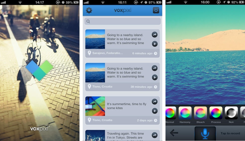 (Images: top, VoxPixl logo via Facebook; middle, VoxPixl iOS app screenshot; bottom, click here to watch a video demo)