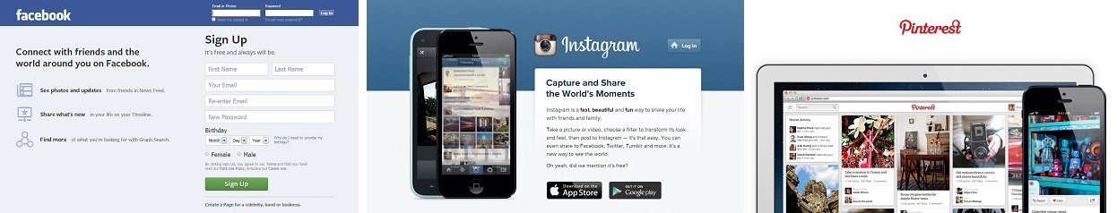 (Images: top, Women, men, and social networking over time by Pew; Men vs women site-specific social media use by Pew; bottom, women’ favorites social networking sites incl. Facebook, Instagram, Pinterest)
