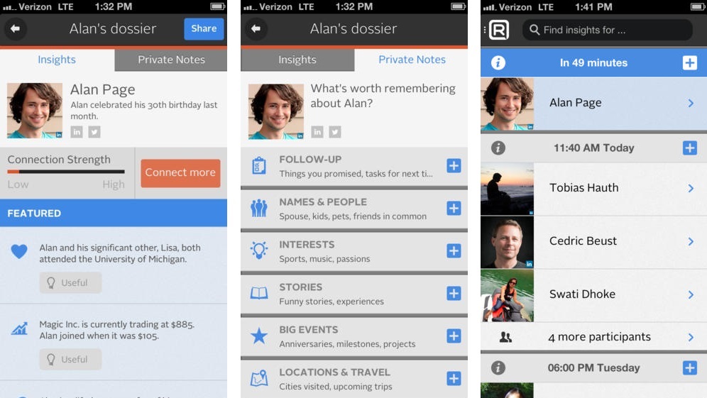Refresh mengumpulkan semua informasi secara cepat tentang orang yang baru di kenal di suatu pertemuan. Aplikasi ini dipakai untuk tugas menyiapkan informasi tentang orang yang akan di temui, sehingga ketika bertemu akan mencapai hasil diskusi yang maksimal. Refresh membantu pengguna mendapatkan wawasan secara instan terhadap seseorang pada suatu diskusi, dengan memberikan informasi seperti prestasi kerja, riwayat pekerjaan, daftar proyek, aktivitas di luar jam kantor, daftar teman dekat, dan lain sebagainya. Ketersediaan informasi semacam itu akan membantu suatu percakapan menjadi lebih bermakna dan bisa mencapai goal untuk menghasilkan suatu transaksi.