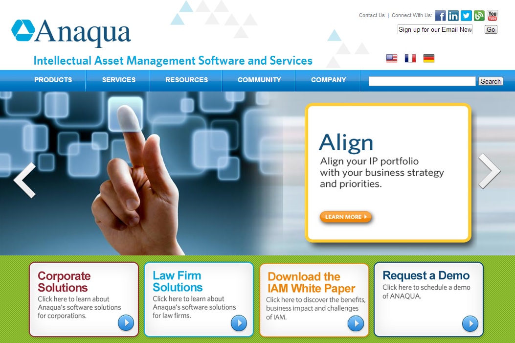 Anaqua membuat perangkat lunak yang berbasis di cloud (SaaS) untuk membantu perusahaan mengelola dan melindungi semua aset kekayaan intelektual mereka secara global. Dengan mengandalkan perangkat lunak berbasis SaaS, perusahaan-perusahaan dengan mudah mengelola paten, melakukan pengajuan paten baru, membayar pembaharuan, pengecekan paten, dan juga memproses monetisasi melalui lisensi penggunaan hak paten oleh perusahaan lain. Di samping itu, Anaqua juga membantu perusahaan untuk tetap waspada terhadap sangsi hukum dan meningkatkan praktek melindungi kekayaan intelektual mereka.