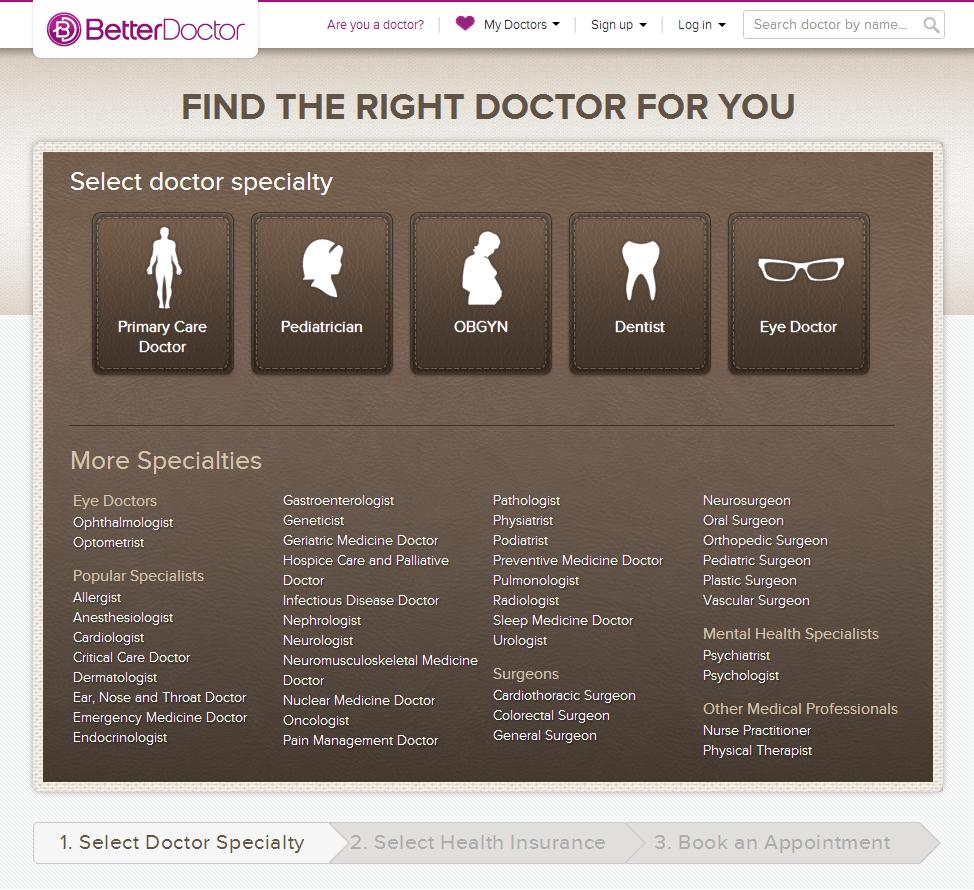 Banyak pasien di kota besar membutuhkan waktu lebih dari tiga minggu membuat janjian, sebelum bisa bertemu seorang dokter spesialis. Aplikasi dan situs web BetterDoctor ingin membantu jutaan pasien menemukan dokter berkualitas tinggi demi menjaga kesehatan mereka, dengan mudah dan cepat. BetterDoctor menyediakan database yang berisi daftar lebih dari satu juta dokter dan penyedia perawatan lainnya di berbagai kota besar di Amerika, termasuk Los Angeles, New York, Chicago, San Francisco, Washington DC, dan lain-lainnya. Tim pengembang aplikasi mendulang informasi dari situs ulasan Yelp, daftar rumah sakit, dan tempat penyedia kesehatan milik swasta (medical center).
