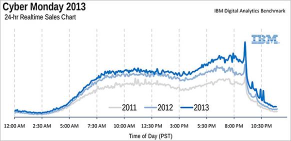 Walaupun tidak menampilkan angka penjualan, namun data dari IBM memberikan angin segar bagi pengecer online, dari toko ukuran kecil sampai ukuran raksasa, seperti Amazon.com, Wal-Mart, Target, BestBuy, dan sebagainya. Secara garis besar, penjualan pada hari Senin tahun 2013 meningkat 20,6 persen dari Cyber Monday tahun 2012.