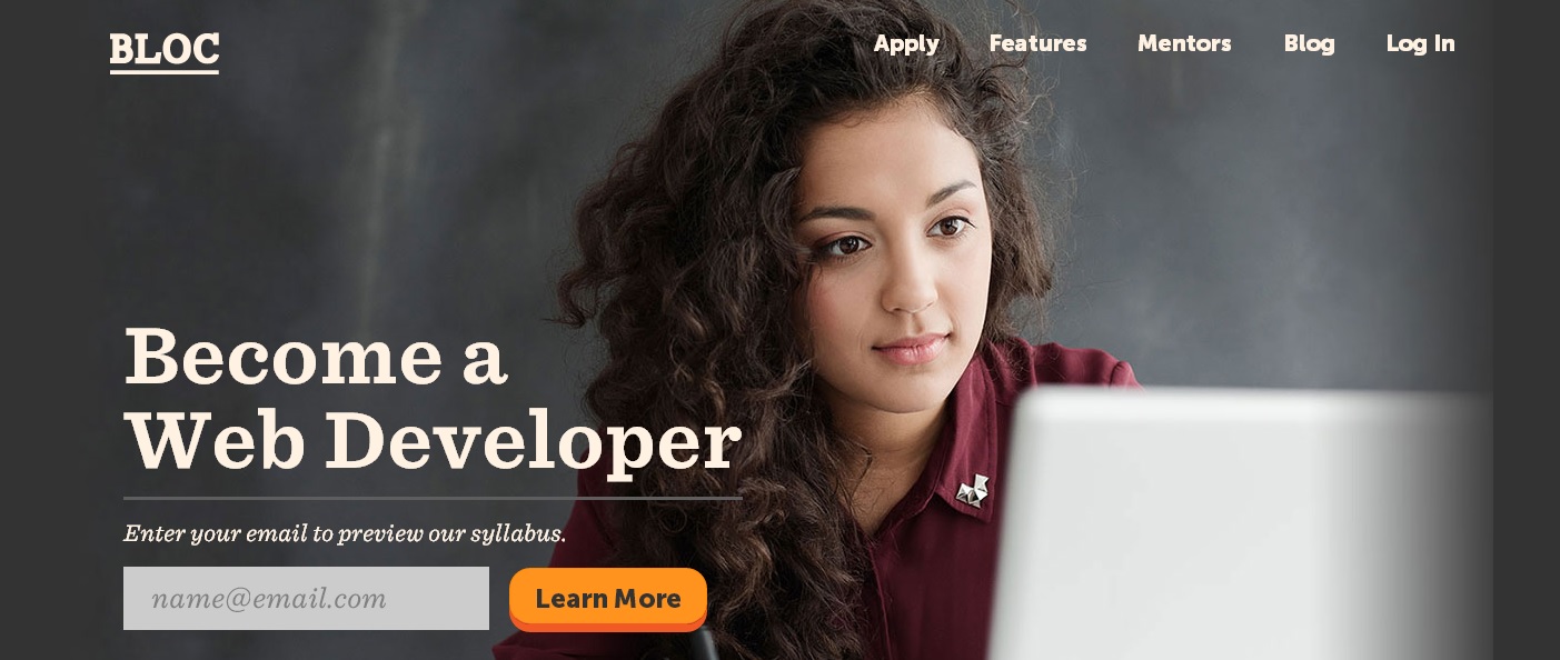 Bloc.io adalah perusahaan startup yang menyediakan layanan pengajaran dasar khusus untuk pengembangan web secara intensif. Keunggulan Bloc yaitu menawarkan kursus komputer online yang dapat diakses oleh siswa di mana saja selama mereka memiliki komputer dan akses Internet. Kalau dibandingkan penyedia kursus online lainnya, mereka biasanya hanya menyediakan rekaman video dan buku elektronik, sedangkan Bloc masih mempertahankan pola mengajar dengan tenaga manusia dan menyediakan peralatan canggih yang memudahkan koneksi antara pelajar dan mentor. Bloc merasa bahwa pola kerja dengan mengandalkan mentor berpengalaman yang siap membantu siswa setiap saat, akan lebih baik ketika siswa ingin melakukan pelatihan keterampilan. Bloc menghubungkan siswa secara langsung dengan mentor yang berfungsi sebagai guru dan juga sebagai kerabat kerja, yang juga bersedia memeriksa programming kode dan melakukan uji-coba sebagai latihan menciptakan produk sesungguhnya.
