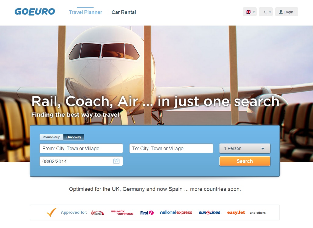 (Image: bottom, GoEuro homepage screenshot)