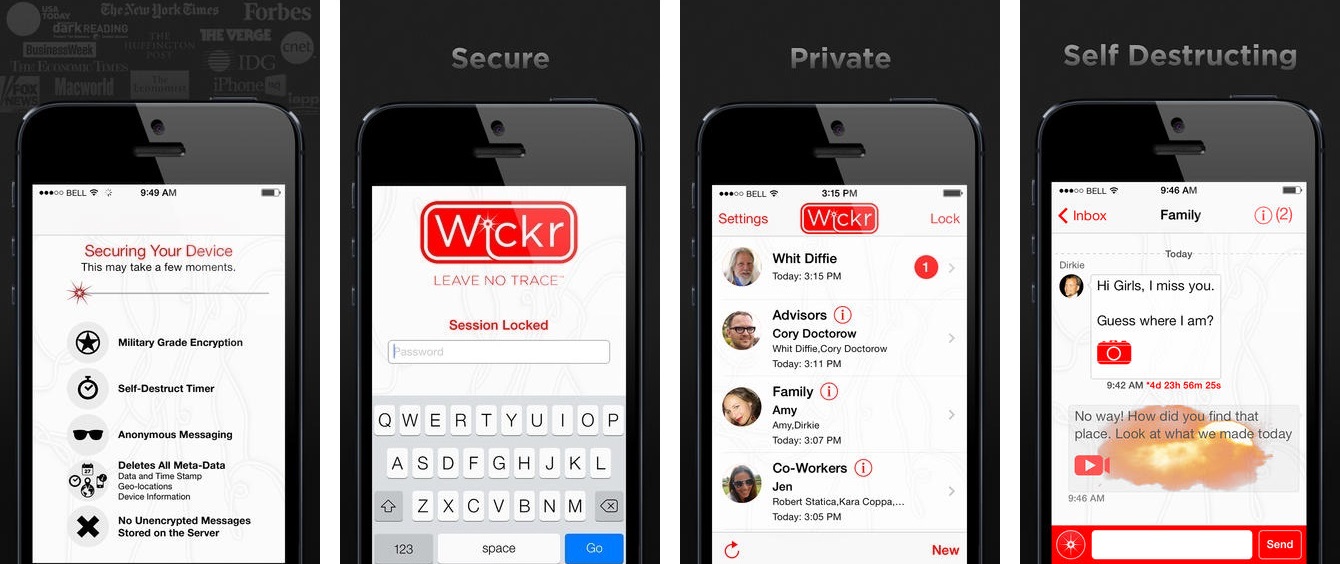 Wickr membangun sebuah sistem messaging yang kuat dan memberikan proteksi terhadap setiap pribadi untuk dapat berkomunikasi secara leluasa dengan semua orang. Keunggulan Wickr termasuk menyediakan aplikasi yang memungkinkan pengguna mengirim pesan yang sudah terenkripsi. Keistimewaan fitur yang dapat menghapus data dan pesan di dalam perangkat seseorang. Fitur ini dapat diatur secara otomatis menghancurkan semua pesan setelah menyelesaikan percakapan. Aplikasi Wickr sudah tersedia untuk perangkat seluler yang dijalankan dengan system operasi iOS dan Android.