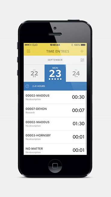 Clio menyediakan perangkat lunak untuk manajemen berbasis cloud. Tugas Clio untuk mengelola waktu kerja, membuat surat penagihan, membuat jadwal pertemuan dan tugas harian. Semua aktivitas tsb dengan mudah menghubungkan pengacara dengan klien. Untuk menjamin privasi, semua data dijaga keamanannya setara dengan system yang dipakai di bank.