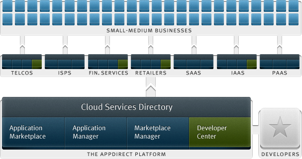 AppDirect menyediakan semacam pasar dan platform untuk membangun dan mengelola toko aplikasi. AppDirect bertindak seolah-olah sebagai broker penjualan aplikasi, antara pemilik toko dan pencipta aplikasi. AppDirect bekerja sama dengan beberapa perusahaan raksasa teknologi yang sudah membangun aplikasi, seperti Box, Dropbox, dan Google. AppDirect juga menjalin kemitraan dengan pembuat aplikasi perorangan. Semua jaringan mitra sangat mudah diintegrasikan, sehingga memungkinkan pengguna melakukan login ke akun dan membayar iuran bulanan dibawah satu atap.