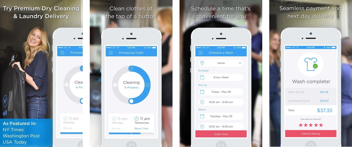 Kehidupan penduduk kota besar di Amerika semakin nyaman karena mereka tidak perlu mengantar pakaian kotor ke binatu, atau mencuci baju sendiri dengan membawa deterjen ke landromart. Sebaliknya, perusahaan startup Washio yang menyediakan layanan laundry dan dry cleaning akan segera datang ke rumah mereka mengambilnya. Dalam waktu hanya 24 jam kemudian sudah selesai dicuci, dilipat rapi, dan di antar kembali ke rumah pelanggan.