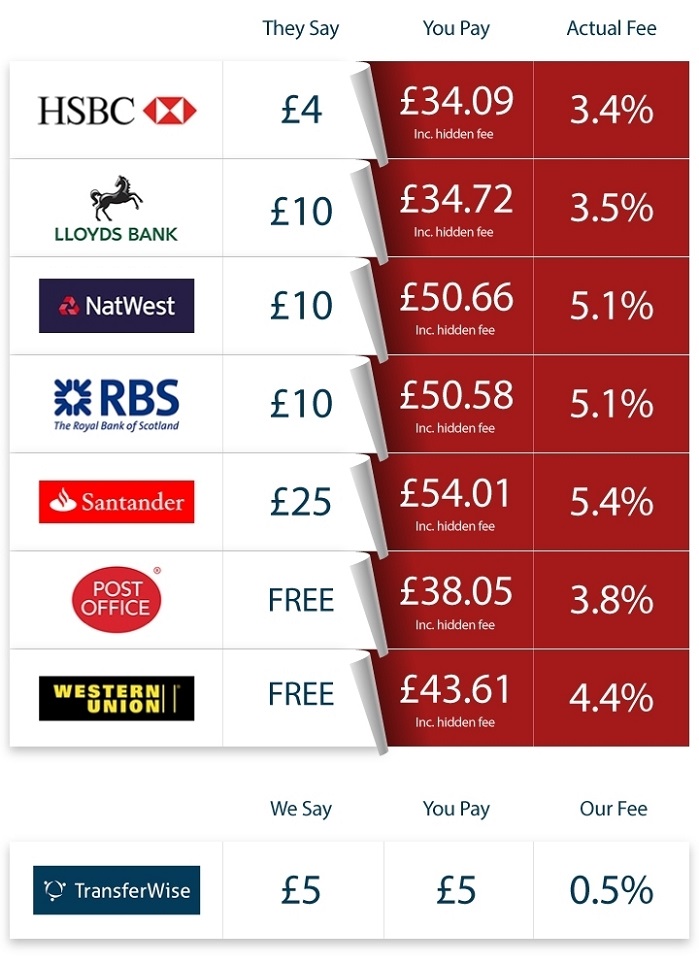 Bank-bank sering mengklaim bahwa pengiriman uang ke luar negeri tanpa memungut biaya tambahan. Ternyata ada trik pemasaran tersembunyi yang kemudian mengharuskan pelanggan membayar berbagai macam biaya, seperti biaya wire transfer dan biaya pertukaran valuta asing yang biasanya sangat menguntungkan pihak bank. TransferWise diluncurkan untuk membuat pengiriman uang lintas perbatasan International jauh lebih murah, cepat, dan aman.