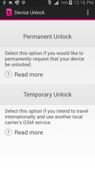 Seminggu kemudian perusahaan penyelenggara jaringan nirkabel terbesar nomor tiga di Amerika, T-Mobile, meluncurkan sebuah aplikasi yang dinamakan “Device Unlock” untuk memudahkan pelanggan membuka ponsel mereka. Setelah dibuka, maka pemilik perangkat dapat memakai kartu SIM dari operator nirkabel lainnya.