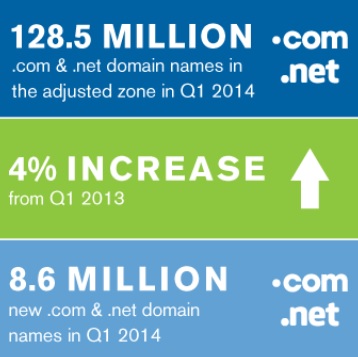 Selama kuartal pertama terdaftar sebanyak 8,6 juta .com dan .net yang baru, dibandingkan kuartal yang sama pada tahun 2013, jumlahnya mencapai 8,8 juta nama. Jumlah ini menunjukkan ada sedikit penurunan, ini akibat mulai tersedianya ekstensi baru, seperti .guru, .photography, .today, dan lainnya.