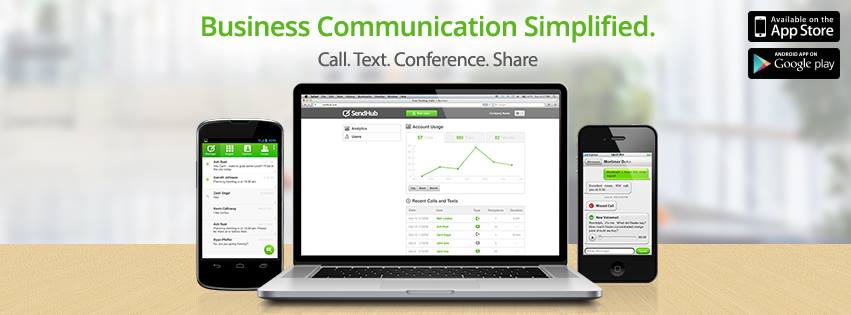(Images: top right, SendHub logo; bottom, SendHub page via Facebook)
