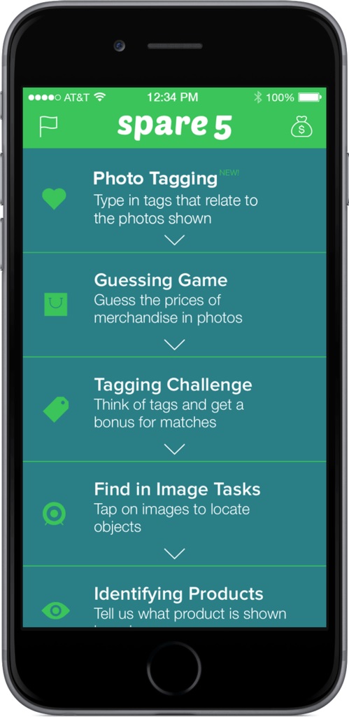Perusahaan startup Spare5 memberikan kemudahan kepada pemilik ponsel pintar yang punya waktu luang menerima bayaran dalam bentuk uang tunai, untuk menyelesaikan tugas-tugas kecil secara cepat lewat ponsel mereka. Tugas untuk memberi umpan-balik kepada pemasar, memotret dan memasang tanda di foto, membantu toko online menentukan harga barang eceran, mengambil survei pendek dan sekaligus memberi wawasan. Spare5 juga menjalin kemitraan dengan Porch untuk memotret dan memberi tanda rumah-rumah di kota besar.