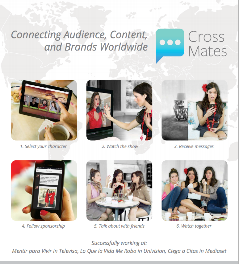 Layanan Applicaster terkemuka dinamakan CrossMates. Aplikasi ini dirancang untuk mempertemukan pemeran dalam film dengan pemirsa. Pemain film dapat berkomunikasi dengan penonton melalui pengiriman SMS teks, bertukar foto, mengirim pesan suara, memberi info tentang jalan cerita, dan menunjukkan video pendek. Aktor dan aktris juga bisa menerima umpan balik dari pemirsa.
