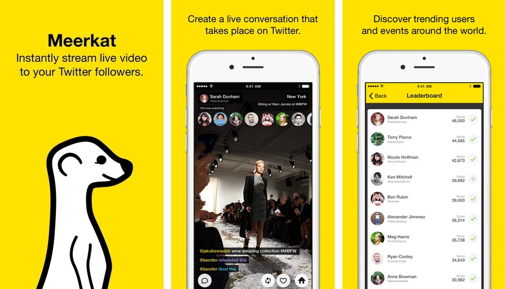 Orang-orang yang sudah men-download aplikasi Meerkat ke ponsel iPhone atau iPad mereka akan menjadi kecanduan melakukan streaming video siaran langsung tentang diri mereka dan lingkungan sekitarnya. Keunggulan aplikasi ini karena sangat mudah digunakan dan hanya membutuhkan sentuhan sekali pada tombol. Ketika memakai aplikasi Meerkat, pengguna secara otomatis berubah karir menjadi seorang penyiar siaran langsung di Internet.