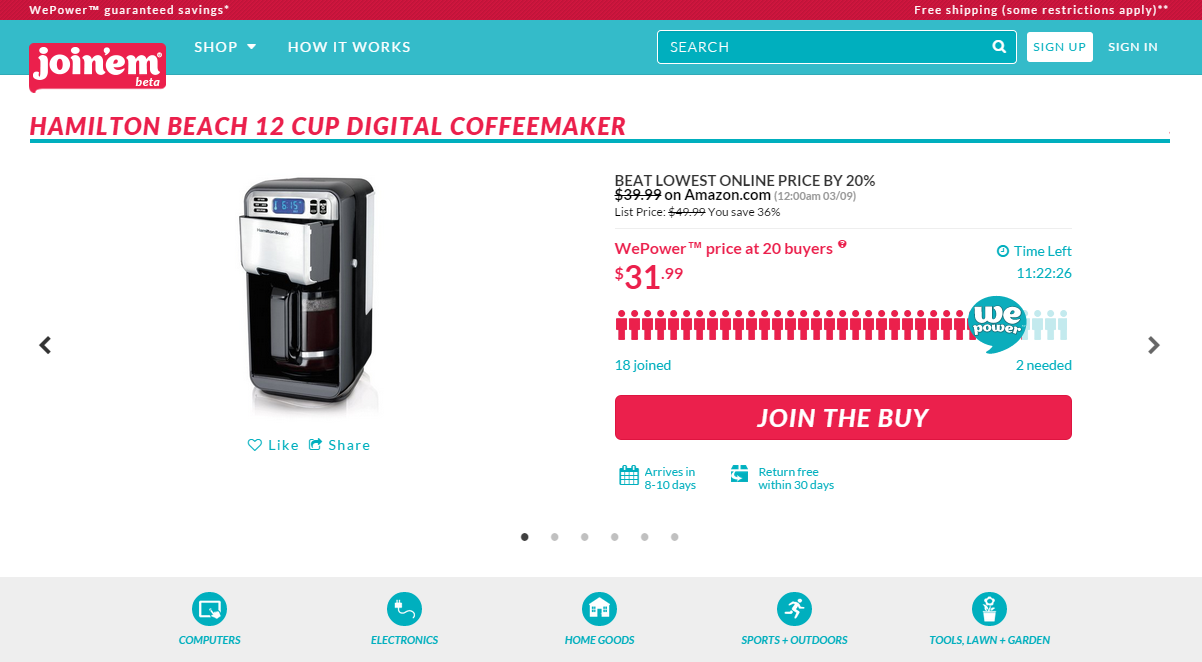 Joinem menawarkan bisnis model berbelanja secara kelompok yang disebut “WePower.” Dengan mengandalkan model ini, maka harga barang akan turun dratis ketika pembeli mencapai jumlah tertentu. Misalnya, Joinem mematok harga dengan diskon mencapai 25 persen dari harga yang paling murah ditemukan di toko lain (misalnya, toko e-commerce Amazon), tapi syaratnya 25 pelanggan harus bersedia membeli produk yang sama dalam batas waktu yang sudah ditetapkan.