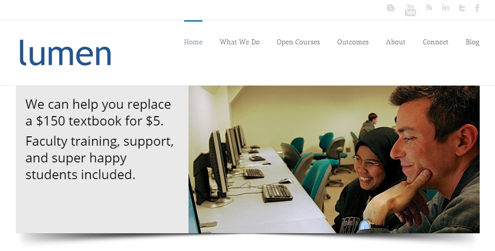 Sejak didirikan pada tahun 2012 di kota Portland, di negara bagian Oregon, Lumen Learning berhasil menjalin kemitraan dengan sekitar 60 lembaga pendidikan tinggi. Keuntungan menggandeng Lumen Learning, perguruan tinggi melihat tingkat kelulusan lebih tinggi dibandingkan menggunakan materi pengajaran dari penyedia yang bersifat komersial.