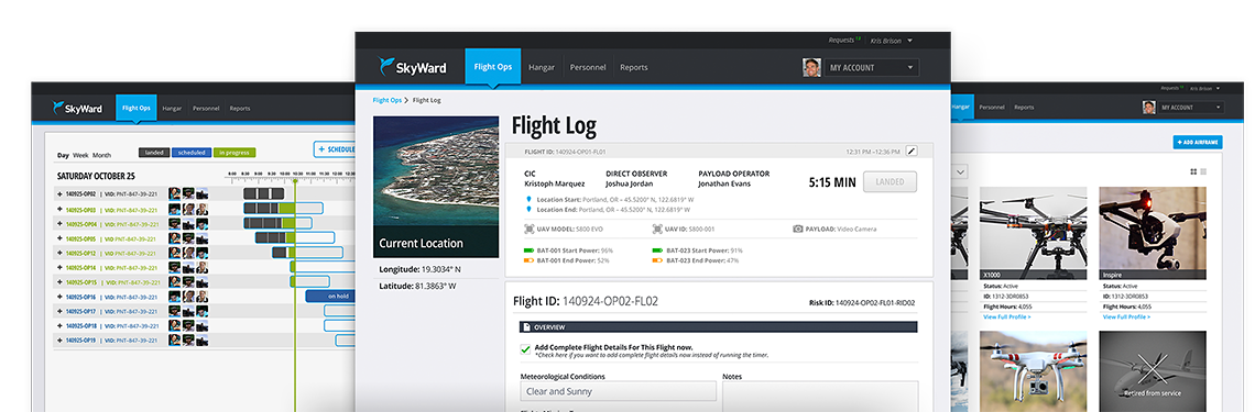 Skyward berbisnis di dunia pesawat nirawak dengan fokus dalam segi penerbangan dan inovasi teknologi informasi. Perusahaan startup ini sedang mengembangkan sistem digital dan perangkat lunak, untuk mengelola data penerbangan, mencatat jam terbang pilot dan perawatan mesin, memeriksa kredensial pilot, dan mengatur pembayaran premi asuransi selama beroperasi di udara. Semua ini dilakukan supaya aman dan mematuhi peraturan pemerintah Amerika untuk penerbangan pesawat nirawak di dalam negeri. Sehingga perusahaan swasta yang ingin menyewa dan menjalankan pesawat nirawak secara komersial tidak perlu pusing kepala.