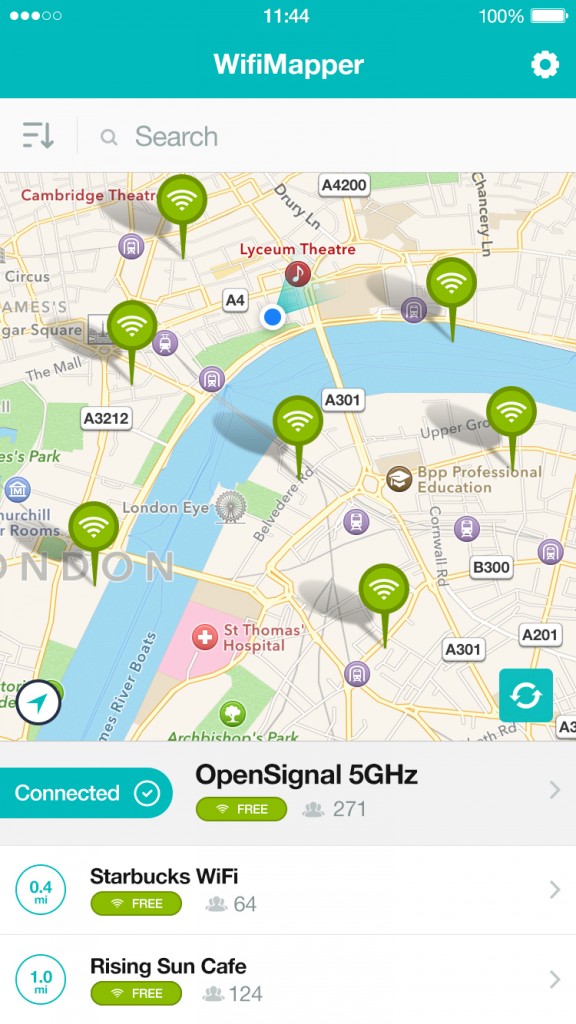 (Image: top right, WifiMapper app for iOS)