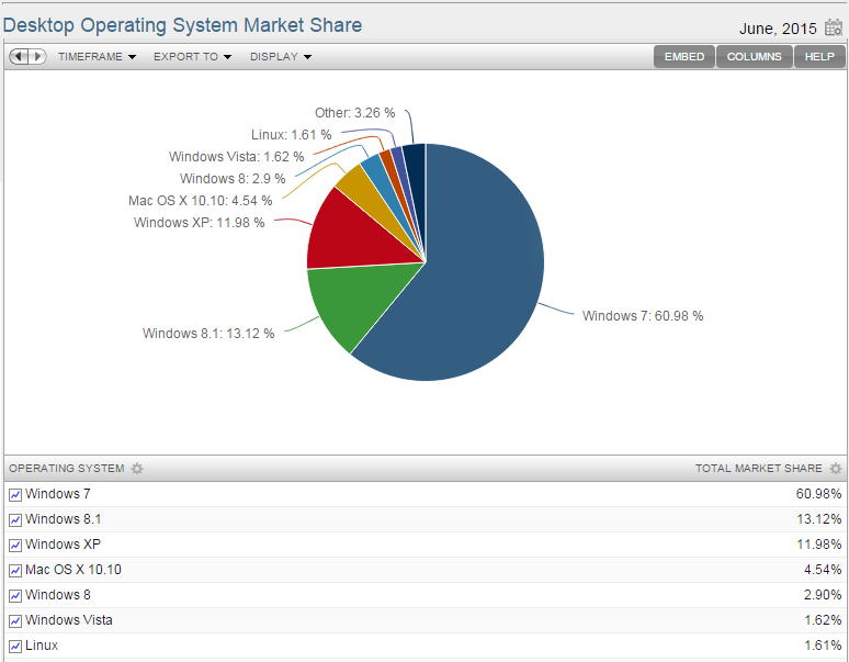 (Image: bottom, Desktop Operating System Market Share by Net Applications, June 2015)
